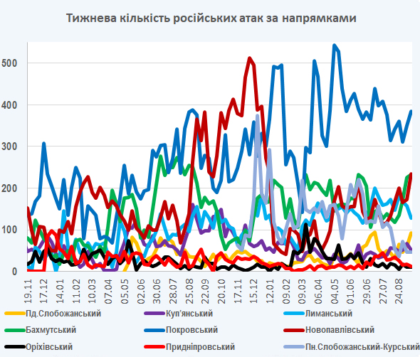 09:05 Інтенсивність російських атак на різних напрямках (за даними зведень Генерального штабу ЗСУ):