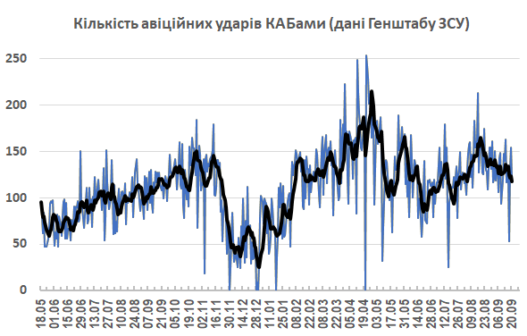 11:45 Протягом минулого тижня російська армія застосувала проти України 823 кореговані авіаційні бомби, що суттєво менше, ніж попереднього тижня (було 954), випливає зі щоденних повідомлень Генштабу ЗСУ.
