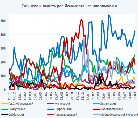 09:05 Інтенсивність російських атак на різних напрямках (за даними зведень Генерального штабу ЗСУ):