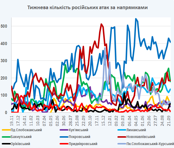 09:05 Інтенсивність російських атак на різних напрямках (за даними зведень Генерального штабу ЗСУ):