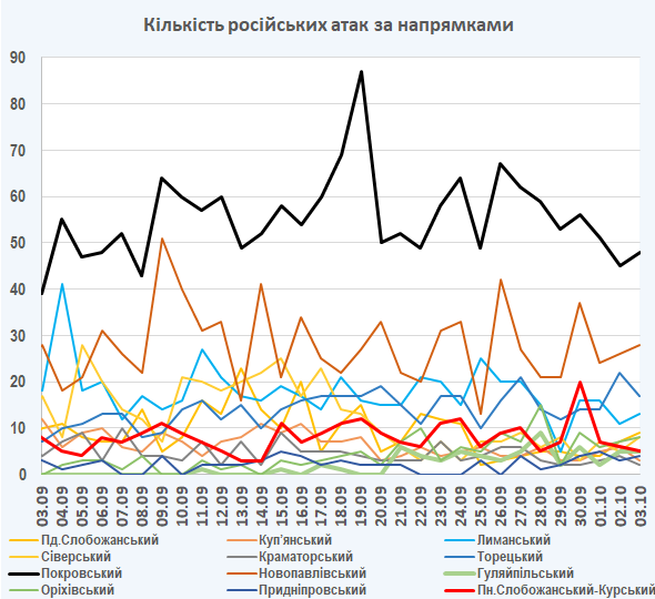 09:05 Інтенсивність російських атак на різних напрямках (за даними зведень Генерального штабу ЗСУ):