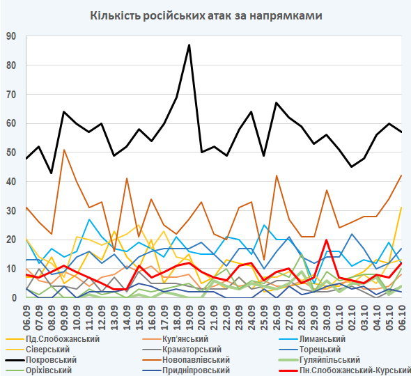 09:05 Інтенсивність російських атак на різних напрямках (за даними зведень Генерального штабу ЗСУ):