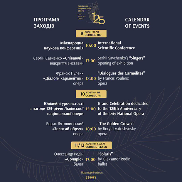 Упродовж 9–12 жовтня 2025 року Львівський національний академічний театр опери та балету імені Соломії Крушельницької урочисто відзначить 125 років від дня відкриття будівлі театру — однієї з найвпізнаваніших архітектурних перлин Львова та всієї України.