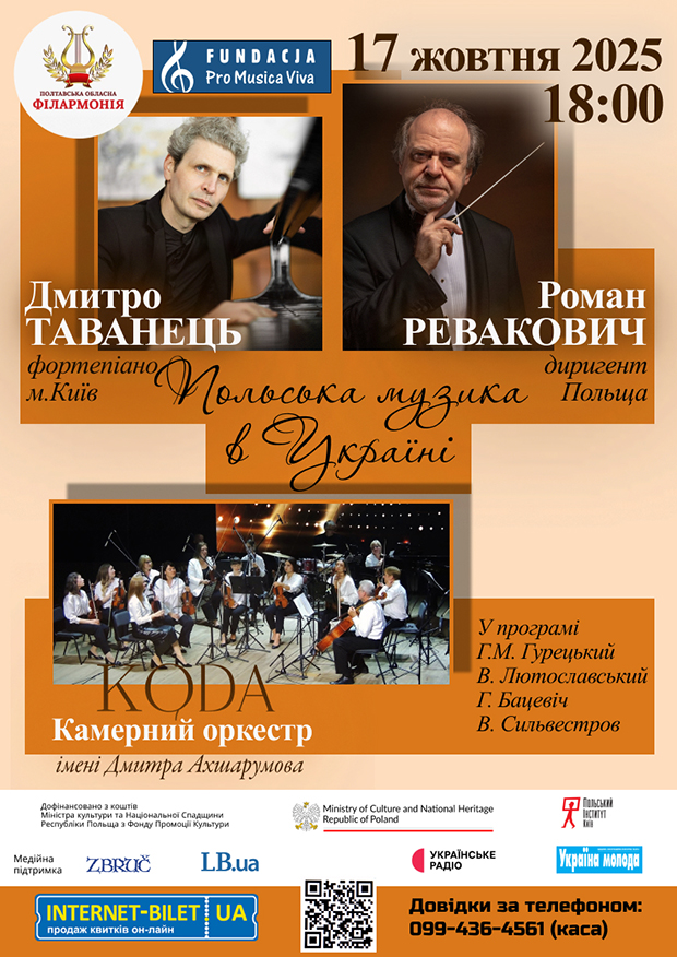 Незабаром концерти 17 жовтня у Полтаві та 24 жовтня у Києві. Заходи провадяться за фінансової підтримки польського Міністерства культури та національної спадщини у співпраці з Польським інститутом у Києві та філармонічними установами згаданих міст, які запевняють участь своїх оркестрів у проєкті.