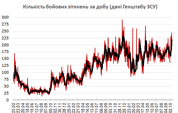 09:10 Інтенсивність російських атак (за даними зведень Генерального штабу ЗСУ):