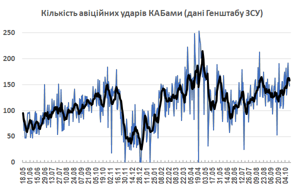 11:45 Протягом минулого тижня російська армія застосувала проти України 1105 корегованих авіаційних бомб, що суттєво більше, ніж попереднього тижня (було 1032), випливає зі щоденних повідомлень Генштабу ЗСУ.