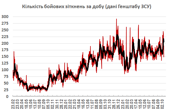 09:10 Інтенсивність російських атак (за даними зведень Генерального штабу ЗСУ):