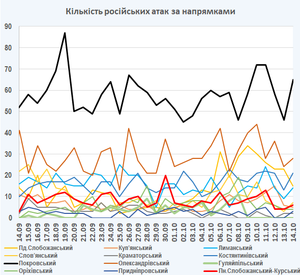 09:05 Інтенсивність російських атак на різних напрямках (за даними зведень Генерального штабу ЗСУ):