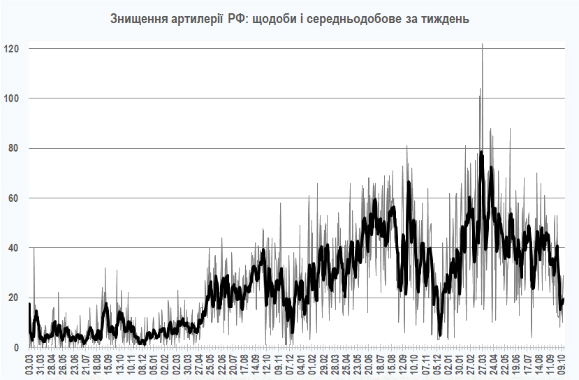 1089,1% артилерійських систем (з них 3,5% за минулий тиждень),