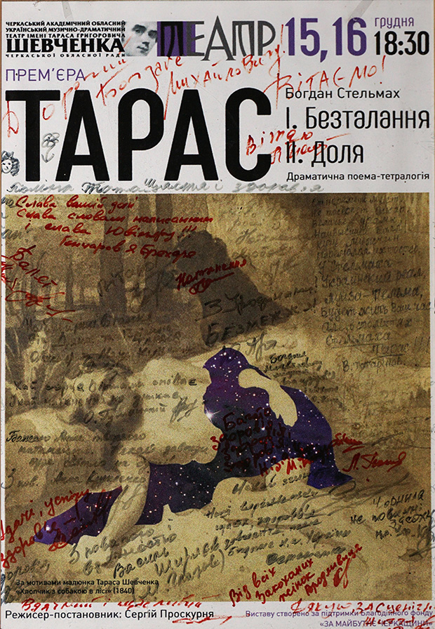 Афіша вистави "Тарас" за двома першими частинами поетичної тетралогії.