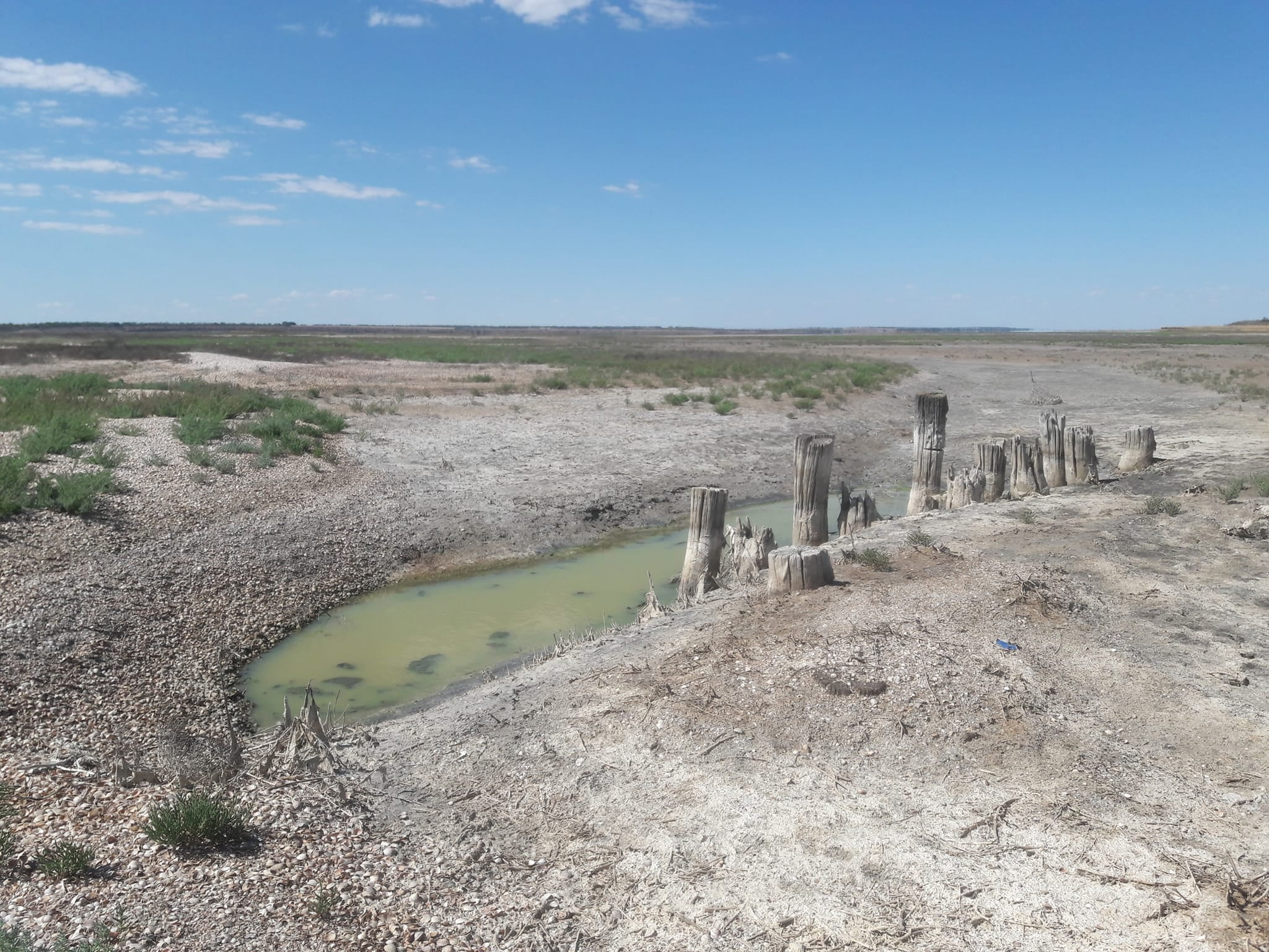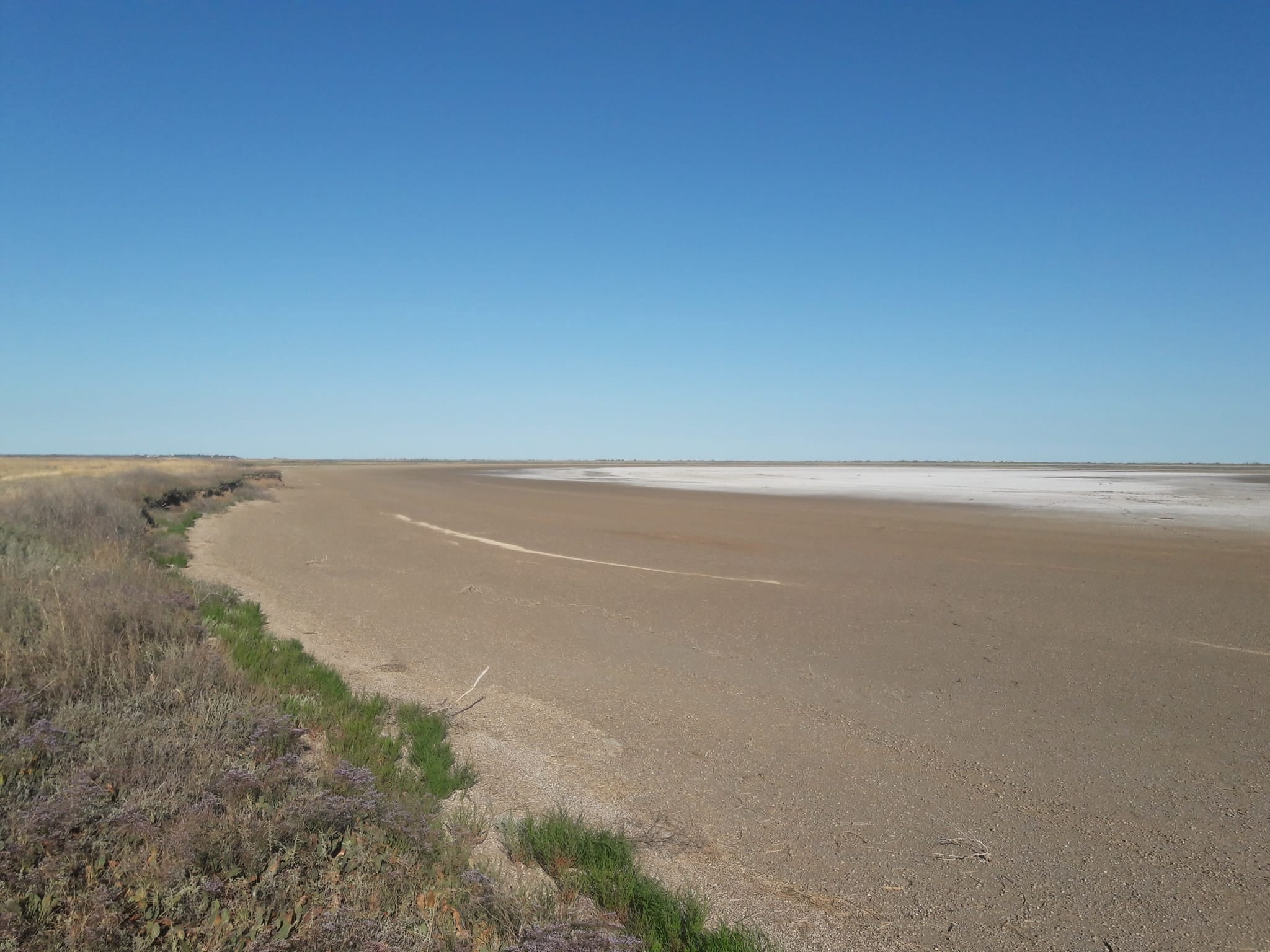 Цьогоріч прорву, утворену штормом у пересипі ще позаторік здається, знову замулило, дощів немає, й лимани почали пересихати. Вчергове. В основній частині вода вже відступила від берега до сотні метрів, у верхів'ях більше, а на мілинах, що по колу піщано-черепашковими кісками оточені – наскільки розумію, вони на повороті берегової лінії шляхом намиву утворюються – і зовсім пересохло. Й білим шаром сіль лежить…