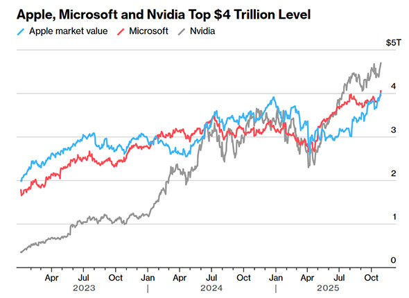 Таким чином Apple стала третьою компанією в світі, вартість якої досягла чотирьох трильйонів доларів. Першою цей рекорд встановила компанія Nvidia в липні 2025 року. Другою цього рубежу в тому ж місяці досягла корпорація Microsoft.