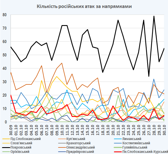 09:05 Інтенсивність російських атак на різних напрямках (за даними зведень Генерального штабу ЗСУ):