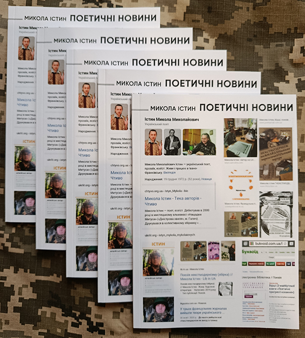 Буквальніший спосіб зазначеного вище захисту – дієве існування талановитих поезієзнавчих, літературно-критичних аксіологічних текстів, яких, шкода, нині обмаль навіть на папері, а в обширі цифровому взагалі не вгледіти під нашаруванням текстівок спрощення чи суцільного пошанівку. За такої ситуації про ще якусь оцінювальну адекватність захисного стосовно поезії плану, здавалось би, не варто й мовити. Але Микола Істин, автор книжки «Поетичні новини» (І.-Франківськ, «Фоліант», 2025), нині військовик ЗСУ, пропонує дещо своє й доречне. Поетична звістка від нього – це передовсім голосне повідомлення про винайдення й апробацію нового віршового різновиду, в якім своєрідно поєднано лірику з есеїстикою. Технічно так, як у жанрі прозопоезії – поезію з прозою. І як у ньому ж, одна з них – тут есеїстика – в новітньому тандемі є лінійним двигуном…