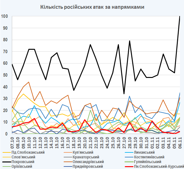 • Поступове просування Росії в напрямку Покровська продовжує спричиняти значні втрати для Росії.