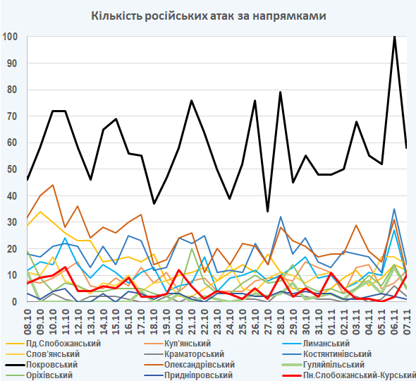 09:05 Інтенсивність російських атак на різних напрямках (за даними зведень Генерального штабу ЗСУ):