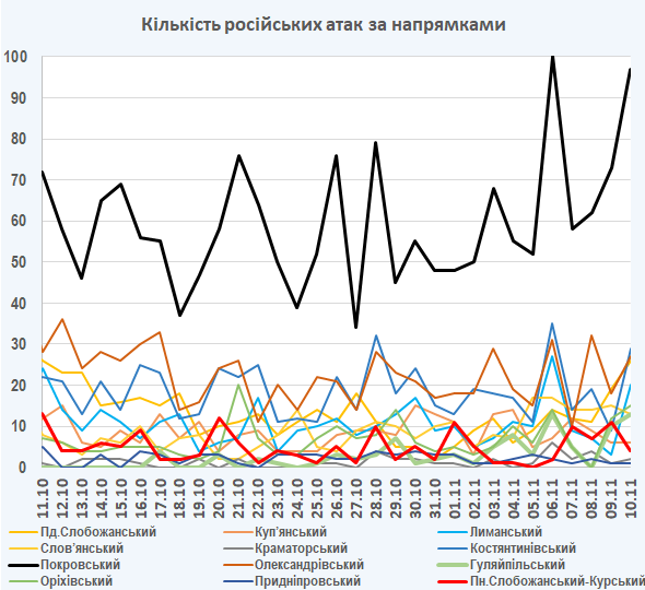 09:05 Інтенсивність російських атак на різних напрямках (за даними зведень Генерального штабу ЗСУ):