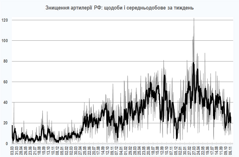 1112,5% артилерійських систем (з них 3,2% за минулий тиждень),