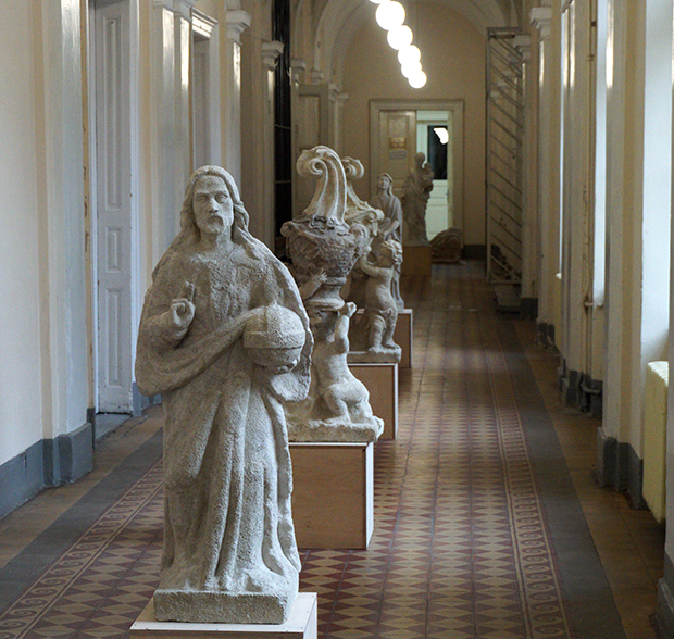 В окремих кімнатах – копії античних зразків і навчальні моделі, що поєднують освітню функцію та музейну вартість. Скульптури, розкидані між корпусами, вступають у діалог не лише між собою, а й з архітектурним середовищем. Давні образи «спілкуються» із сучасними формами, реставровані фрагменти – із новими, сміливими інтерпретаціями. Цей діалог перетворюється на розмову про руйнування й оновлення, де саме простір стає головним медіатором, хоч і мовчазним.