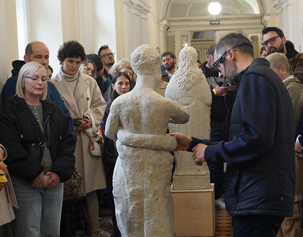 У виставці переплітаються теми пам’яті, освіти, руїни та присутності. Камінь зберігає сліди часу – він водночас і поранений, і міцний. Більшість робіт пов’язані з академічною школою, яка стає частиною самої розмови: її традиції залишаються відчутними в сучасних інтерпретаціях. Архітектура навколо промовляє мовою тріщин – у ній видно і занепад, і надію, через красу. Саме в цьому контексті по-новому звучить питання, яке ставить Діана Клочко: навіщо нам, українцям, гліптотека? Адже навіть країни, які не мали великої античної спадщини, створили власні моделі збереження скульптурних артефактів, які стали важливими для європейської культури. Українська ж традиція кам’яної пластики не така численна, але потребує переосмислення – через реставрацію, вивчення, реконструкції й сучасні алюзії. Ця виставка і є спробою такого переосмислення – коли фрагменти минулого, освітні практики й нові форми присутності з’єднуються у спільному просторі пам’яті. Тут глядач, рухаючись цією виставкою, стає частиною спільного простору, де присутність відчувається через відсутність, а мистецтво – як спосіб не дати забути.