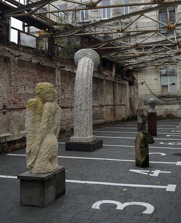 Кожен простір стає окремим «розділом» цього гліптотечного наративу, а скульптури – острівцями, на яких можна відволіктись від занедбаного стану будівлі. Наприклад, мармурова Юстиція Антонія Попеля привертає увагу у північному вестибюлі, а Леви Леонарда Марконі – у вестибюлі колишнього Палацу справедливості; окремо стоїть сучасна робота «Одне на двох» Володимира Семківа, що особливо вразила своєю метафорою спільності та уразливості. Крім цього, серед представлених об’єктів – як відреставровані академічні зразки кам’яної пластики XIX–XX століть, так і сучасні інтерпретації, створені студентами, викладачами, сучасними митцями.