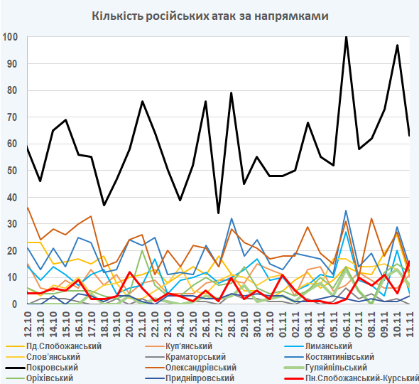 09:05 Інтенсивність російських атак на різних напрямках (за даними зведень Генерального штабу ЗСУ):