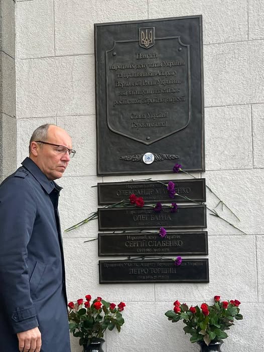 Меморіальна дошка, встановлена на місці вбивства Андрія Парубія (вулиця Єфремова, Львів)