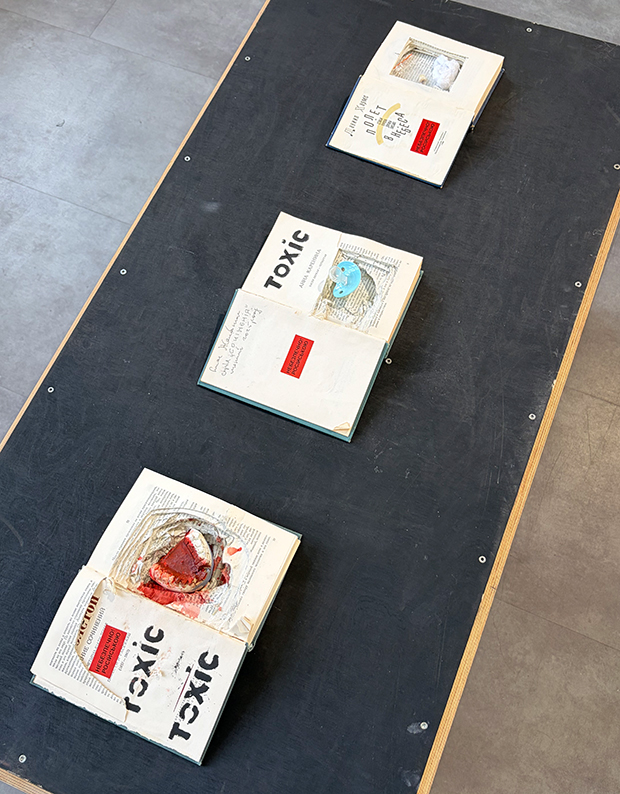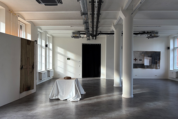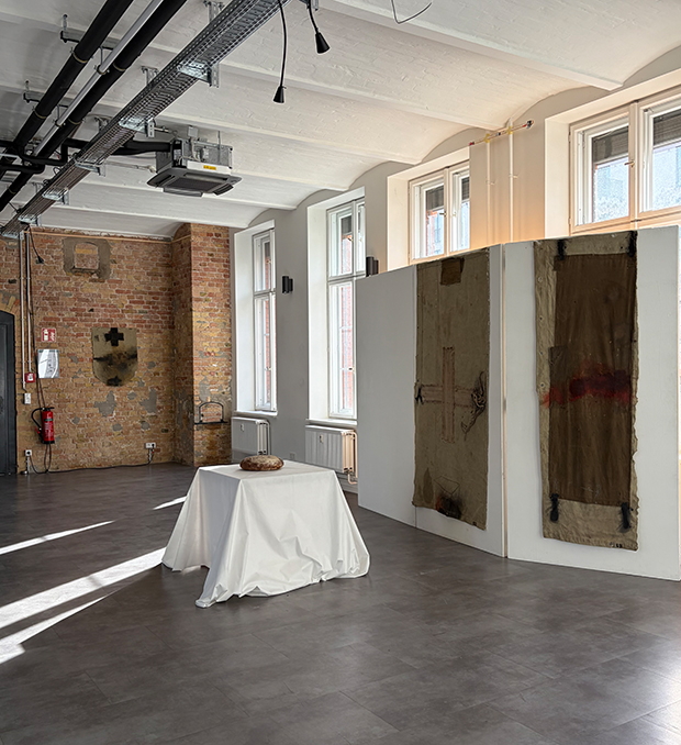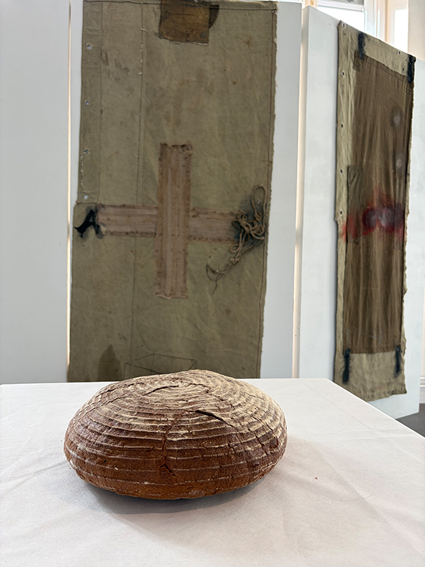 Центральна інсталяція «Причастя» перетворює українську землю на сакральне тіло — поранене, але живе, святе. Усі серії робіт — Radiation, Black Sea, Toxic, Marauders — досліджують наслідки травми, але також показують її як шлях до воскресіння.