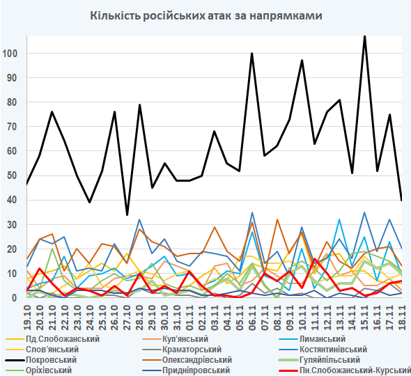 09:05 Інтенсивність російських атак на різних напрямках (за даними зведень Генерального штабу ЗСУ):