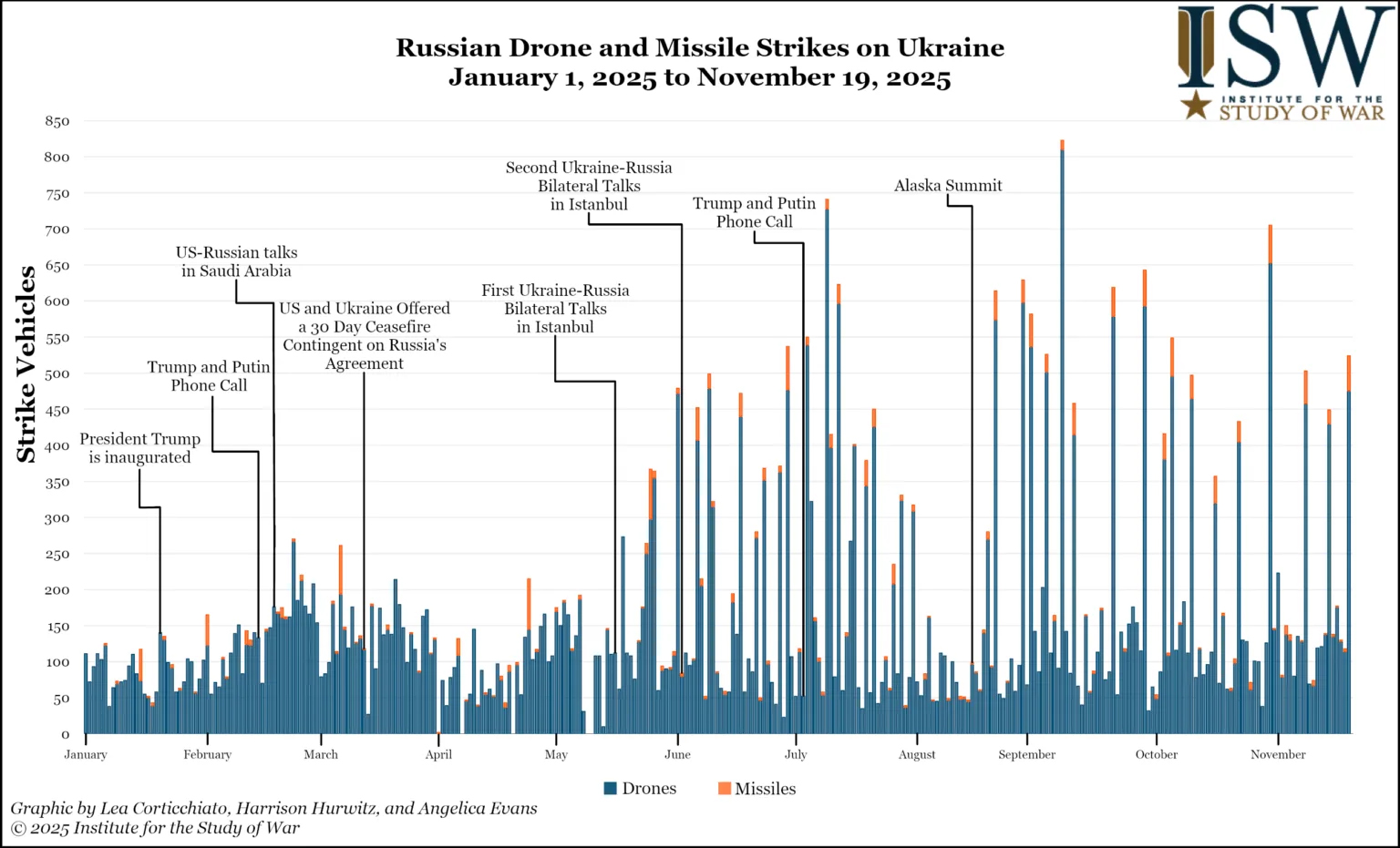 • В ніч з 18 на 19 листопада Росія вбила щонайменше 26 українських цивільних осіб і поранила щонайменше 139 під час комбінованих ракетних і дронових ударів, які завдали непропорційно великої шкоди цивільній забудові.