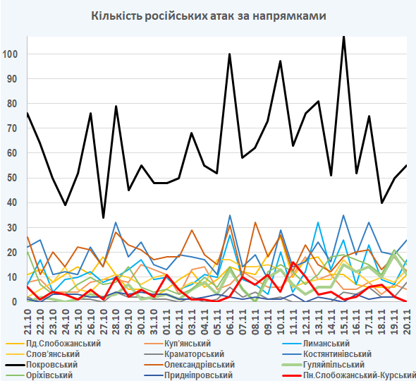 09:05 Інтенсивність російських атак на різних напрямках (за даними зведень Генерального штабу ЗСУ):