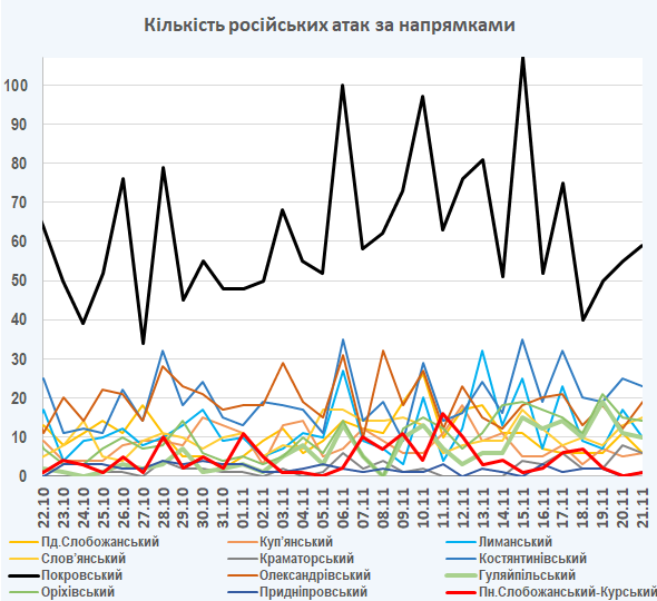 09:05 Інтенсивність російських атак на різних напрямках (за даними зведень Генерального штабу ЗСУ):
