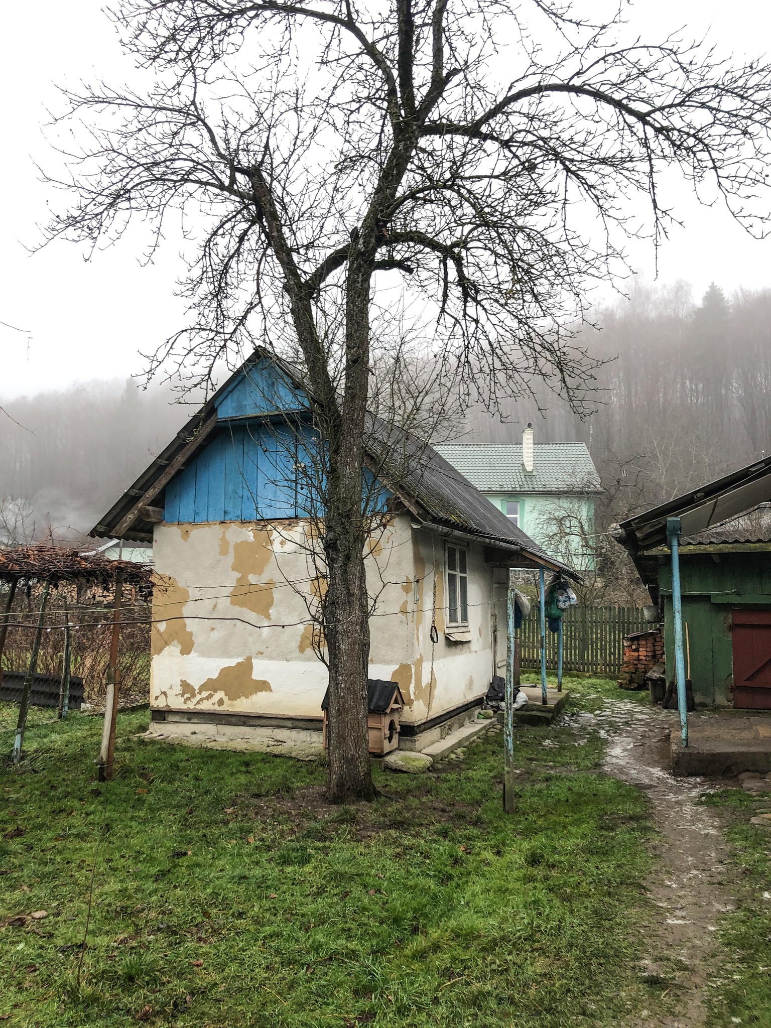 За спиною його хати – велетенська палітра: високий горб, порослий рівними довговʼязими деревами з листвою від салатового до пекельно-червоного і клавіатурою стовбурів від чорного до білого. Вони торкаються землі вище за наші голови і захисною стіною впевнено височать над усім смертним, бо ж врубуються в саме небо, зливаються в одно ціле саме з ним. Нечасто красі вдається створювати відчуття захищеності й незламності.