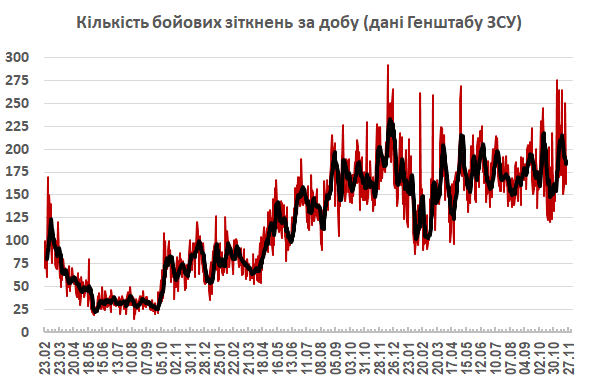 Загалом, протягом минулої доби зафіксовано 191 бойове зіткнення.