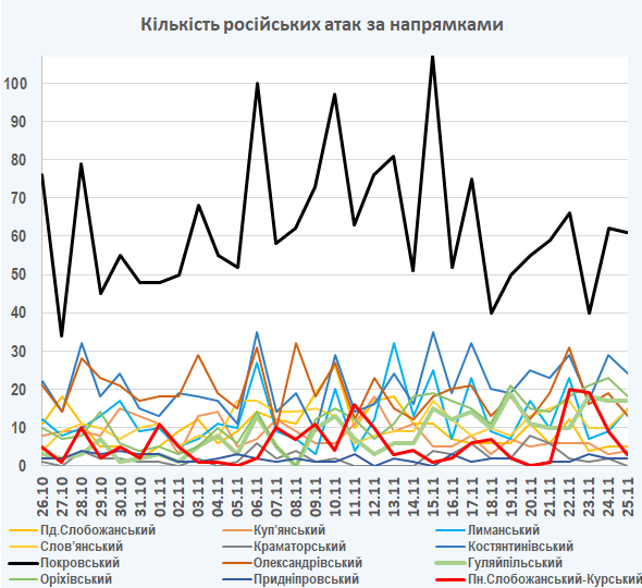 09:05 Інтенсивність російських атак на різних напрямках (за даними зведень Генерального штабу ЗСУ):