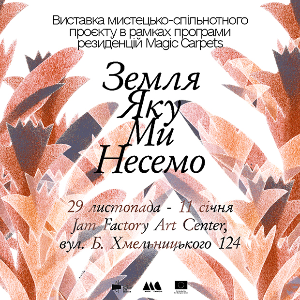 29 листопада о 16:00 у Jam Factory Art Center у Львові відкриється виставка «Земля, яку ми несемо». Вона є підсумком однойменної мистецько-спільнотної програми, яку артцентр втілював влітку 2025 р. у межах міжнародної мистецької резиденції Magic Carpets.