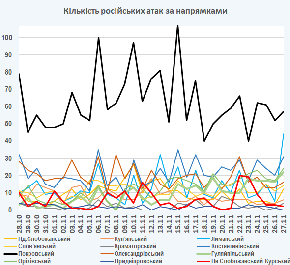 09:05 Інтенсивність російських атак на різних напрямках (за даними зведень Генерального штабу ЗСУ):
