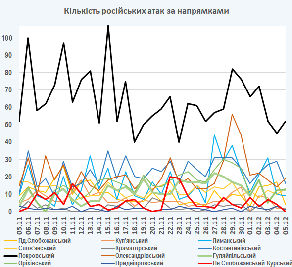 09:05 Інтенсивність російських атак на різних напрямках (за даними зведень Генерального штабу ЗСУ):