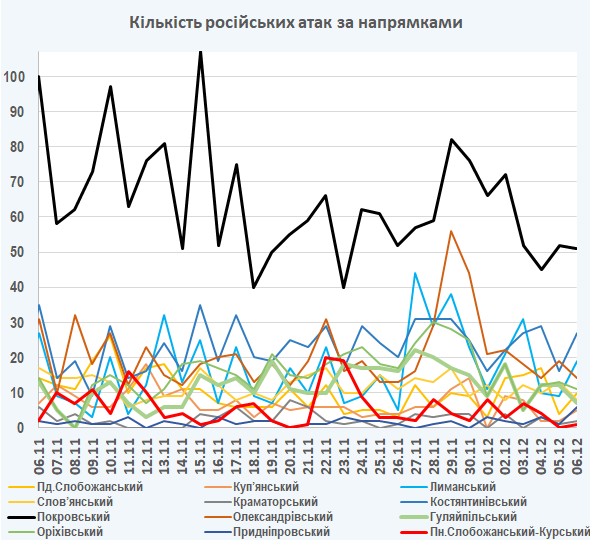 09:05 Інтенсивність російських атак на різних напрямках (за даними зведень Генерального штабу ЗСУ):