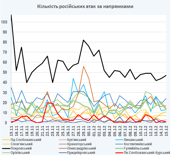 09:05 Інтенсивність російських атак на різних напрямках (за даними зведень Генерального штабу ЗСУ):