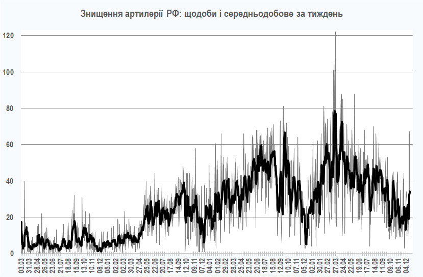 1141,1% артилерійських систем (з них 7,3% за минулий тиждень),