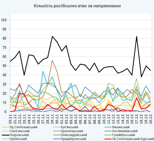 09:05 Інтенсивність російських атак на різних напрямках (за даними зведень Генерального штабу ЗСУ):