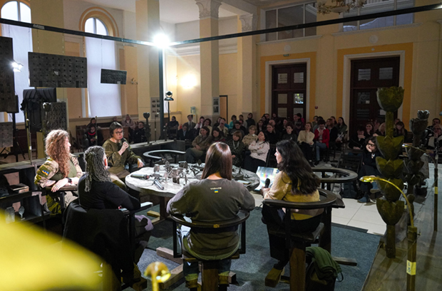 «КРАЇНА ПОЄДНУЄТЬСЯ МОСТАМИ: КУЛЬТУРА В МЕДІА В ЧАСИ ВІЙНИ» .Олексій Ананов, Ксенія Білаш, Єлизавета Жарікова, Олена Апчел; модераторка — Іванна Скиба-Якубова.