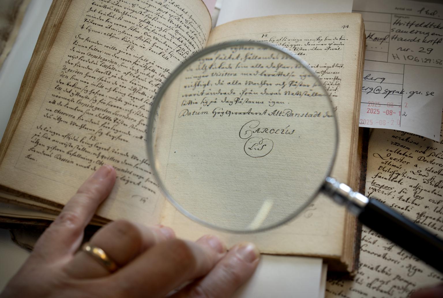 Коли Антоанета Ґранберґ, доцентка кафедри слов'янських мов, на початку року досліджувала Вітфельдтську колекцію, то зробила несподіване відкриття: серед великого некаталогізованого матеріалу вона знайшла, серед іншого, польовий журнал Карла XII.