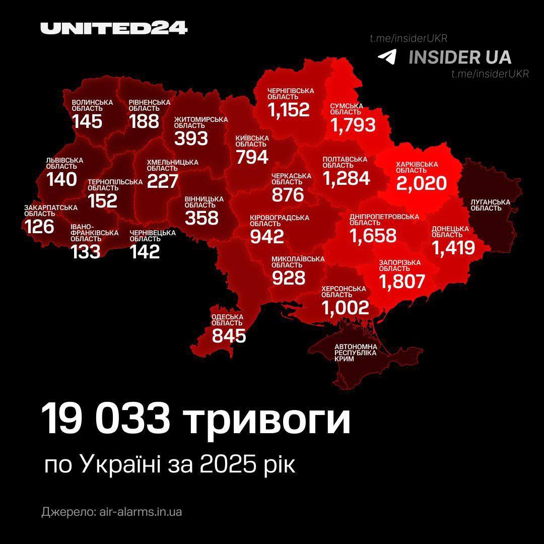 2025 рік став для України роком постійного сигналу небезпеки. За офіційними підрахунками, повітряна тривога в країні лунала щонайменше 19 033 рази. Це — суха статистика, за якою стоїть щоденне життя мільйонів людей.