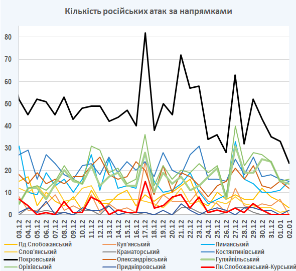 09:05 Інтенсивність російських атак на різних напрямках (за даними зведень Генерального штабу ЗСУ):