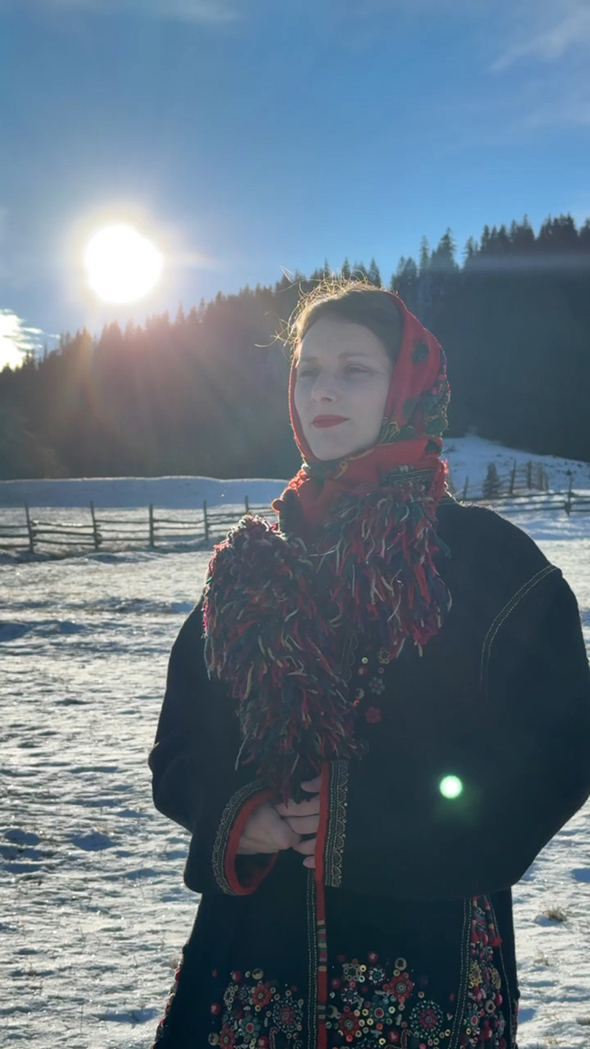 Бігла з банечкою поливаною в руці святити воду зранку перед Водохресним Святим Вечором. Зима рипіла під ногами морозна, тріскуча, скрипіла, мов смичок, що спритиска треться об деку скрипки. Мороз пробирався у рукавиці вовняні, леденив руки, шпарив терпко і остро. Пекло в носі й слези виступали з очей від морозу лютезного, прикривала лице рукою, щоб могти вдихати зігріте повітря під рукавицею теплою.