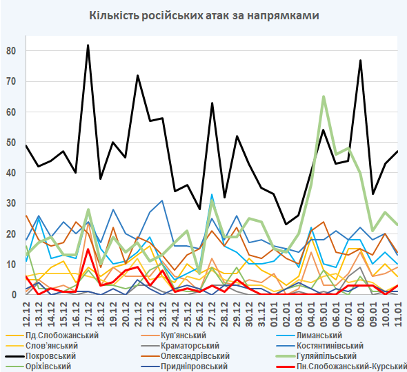 09:05 Інтенсивність російських атак на різних напрямках (за даними зведень Генерального штабу ЗСУ):