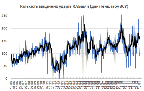 11:55 Протягом минулого тижня російська армія застосувала проти України 1089 корегованих авіаційних бомб, що приблизно стільки ж, як попереднього тижня (було 1080), випливає зі щоденних повідомлень Генштабу ЗСУ.