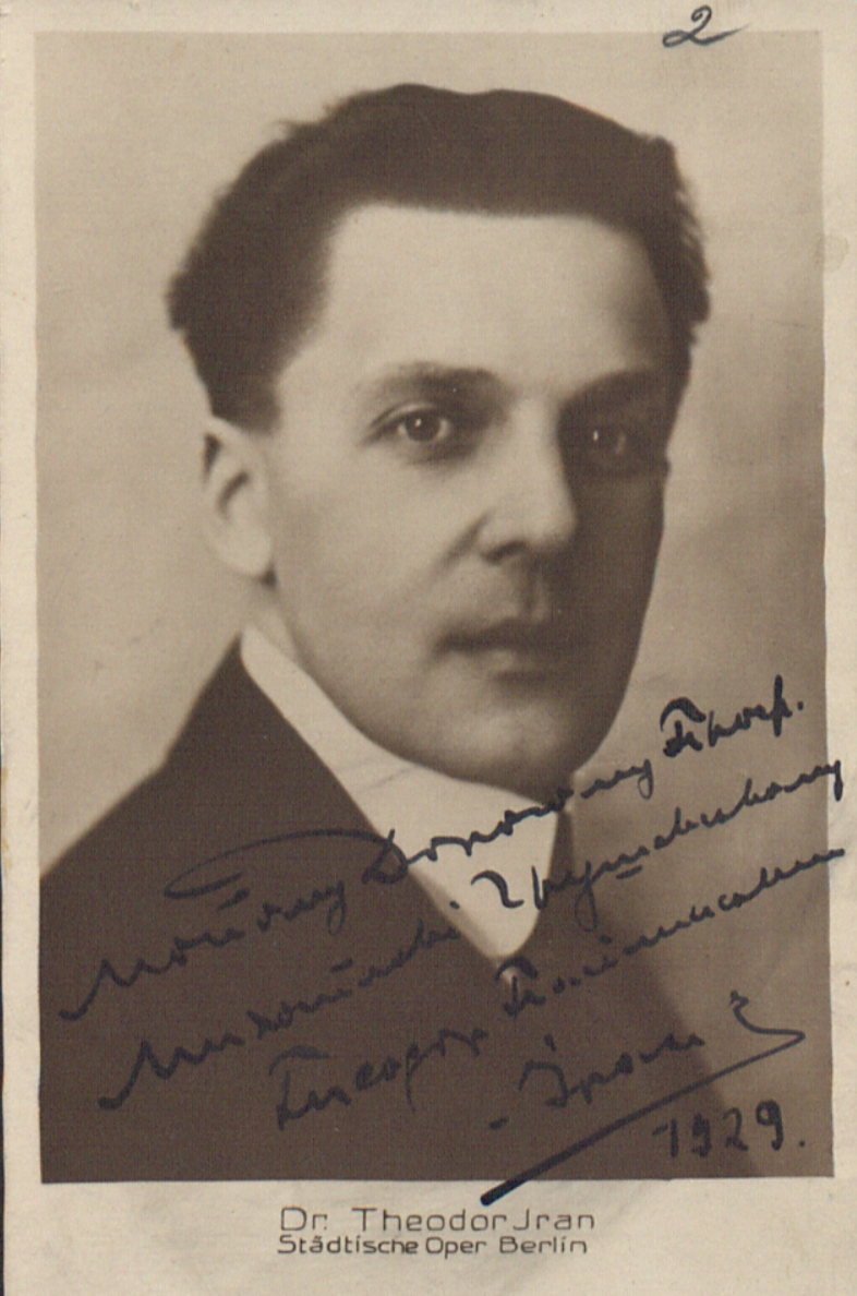 Скільки тривало навчання Т. Пасічинського у Відні, де ще він побував, відточуючи свій співацький талант, достеменно невідомо. Впродовж 1925–1935 рр. тривала його кар’єра соліста Віденської опери⁵³, тоді ж він гастролював у театрах Австрії, Німеччини і Швейцарії. З цього часу, очевидно, з’являється сценічне ім’я Т. Пасічинського – Dr. Theodor Jran (яке зустрічаємо, зокрема, на тогочасних листівках із його зображенням). У своїх концертах виконував твори українських і зарубіжних композиторів, а також українські народні пісні⁵⁴. Володів шістьома європейськими мовами, що суттєво розширювало його репертуар⁵⁵. Зокрема, виконував партії: Педрілло («Викрадення із сералю» В. А. Моцарта), Альфред, Герцог, Манріко («Травіата», «Ріґолетто», «Трубадур» Дж. Верді), Альмавіва («Севільський цирульник» Дж. Россіні), Роберт («Роберт-Диявол» Д. Мейєрбера), Хозе («Кармен» Ж. Бізе), Каварадоссі, Рудольф («Тоска», «Богема» Дж. Пуччіні), Каніо («Паяци» Р. Леонкавалло), Фальцаччі («Кавалер троянд» Р. Штрауса)⁵⁶.